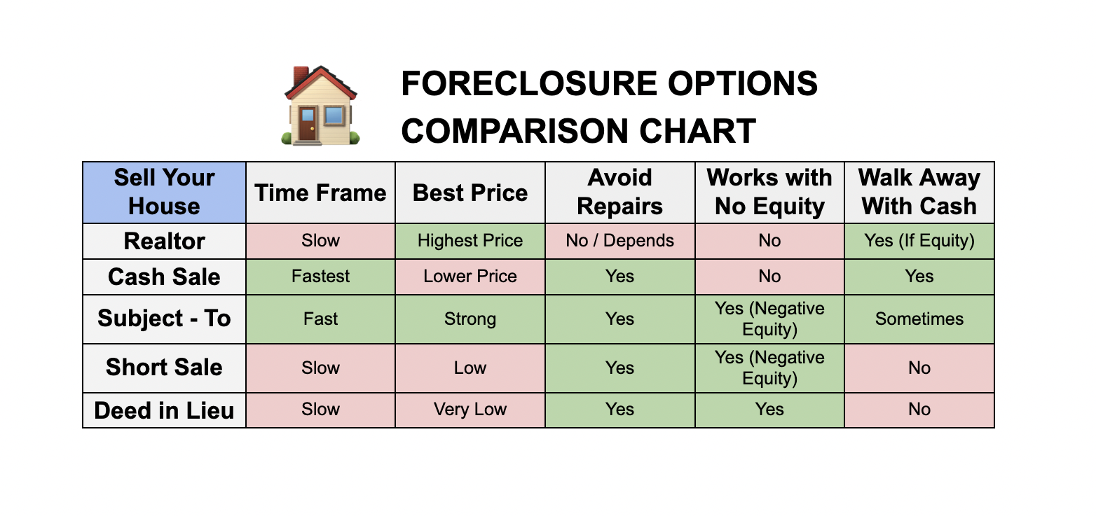 Good for: No equity, behind on payments, or out of time — but wanting to avoid foreclosure and move on cleanly.